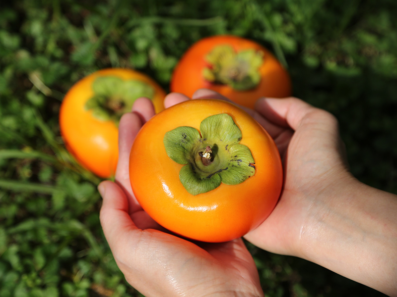 - 完全甜柿:果實自然脫澀甜柿會依據成熟度的增加產生揮發性物質,使柿果自然脫澀,並且不會受到種子多寡影響脫澀,一般採下來就可以直接享用,十分簡單方便就可以品嚐到柿子的美味!