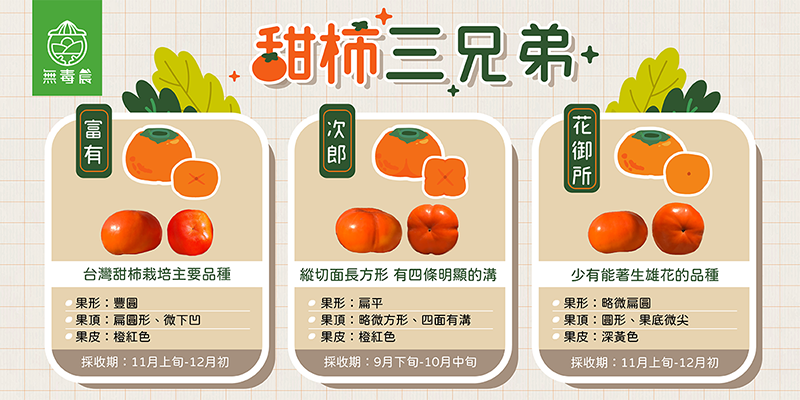 台灣常見的澀柿及甜柿各有以下3種!- 澀柿: