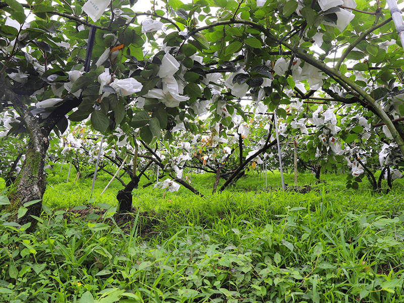 ▲細心的為一顆顆的甜柿套袋等待成熟(圖/無毒農)